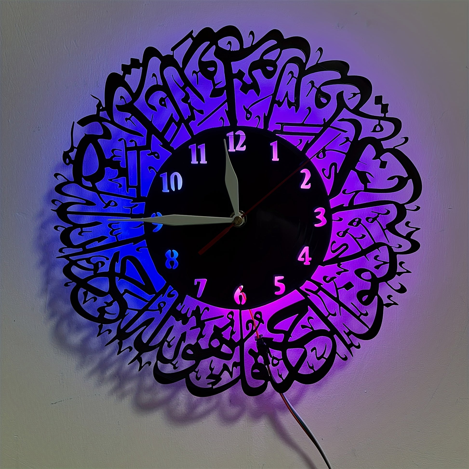 alalar- Islamic Calligraphy Transparent-ساعة جدارية باضاءة - أية الكرسي على مدار 24 ساعة