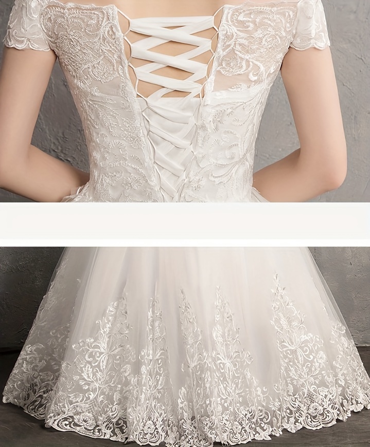 alalar Ladies' Light Luxury Off-Shoulder Wedding Dress- فستان عرس راقي
